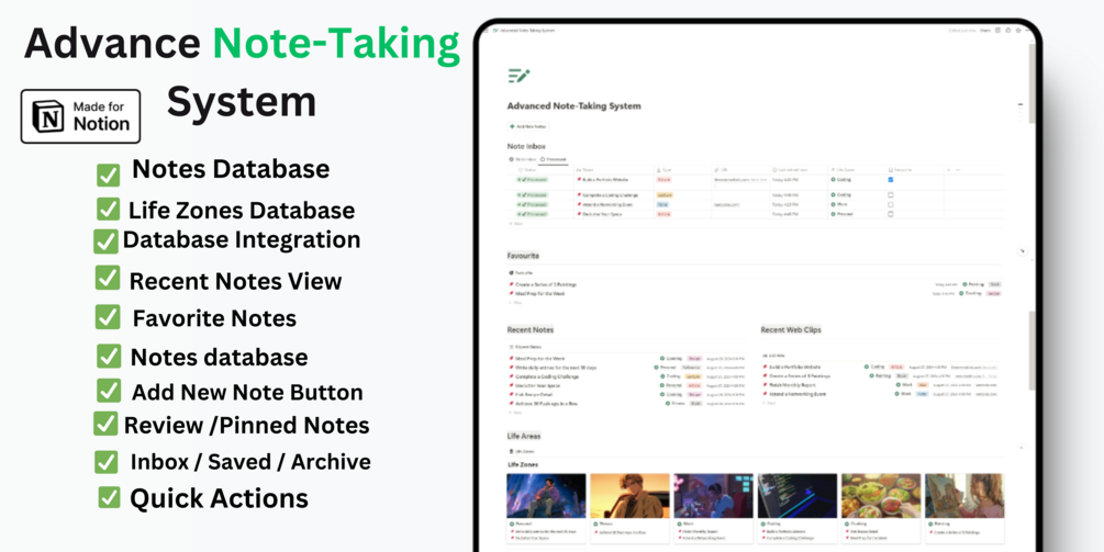 The Advanced Note-Taking System is designed to seamlessly organize and integrate your notes across all areas of life.