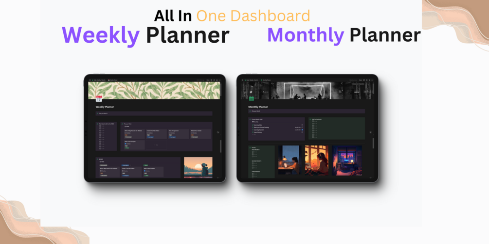 Notion Planner Bundle | Daily, Weekly and Monthly Planner | 3 Dashboard In One