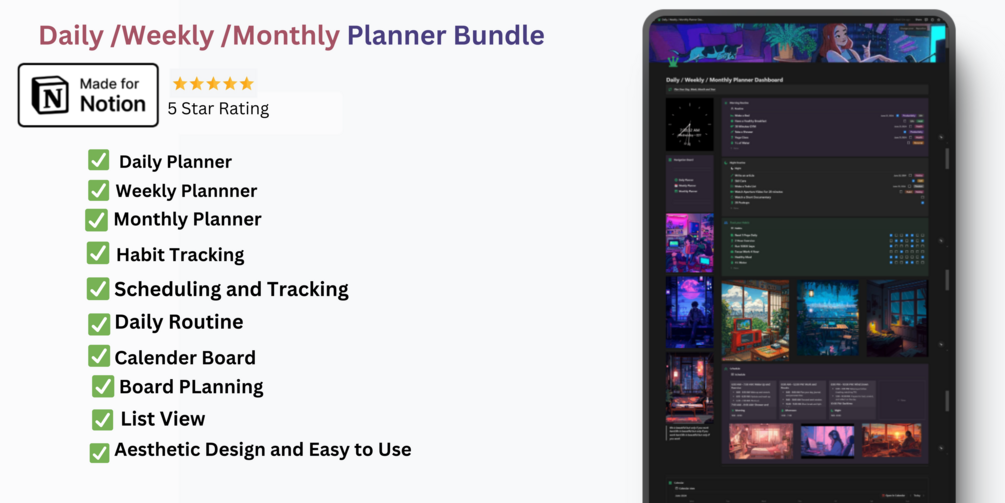 Designed to enhance productivity and keep you on track, the Notion Planner Bundle is perfect for students, professionals, entrepreneurs, and anyone with a busy schedule.