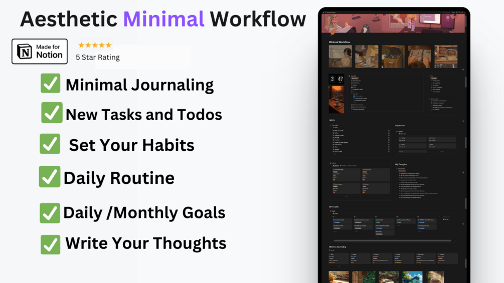 Maximize your productivity with our Minimal Workflow Template for Notion.