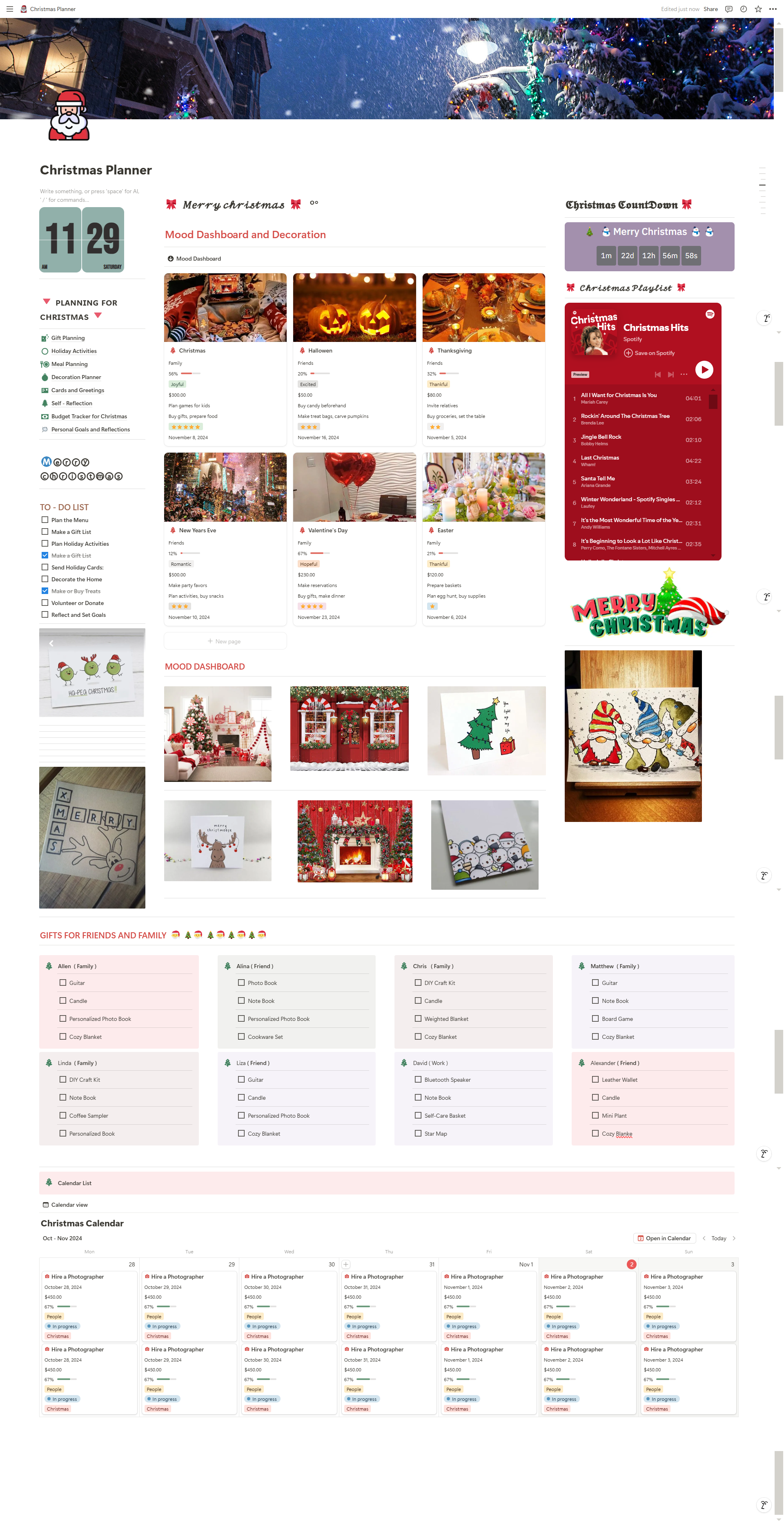 • Christmas Countdown & Planning: Track the days leading up to Christmas with a detailed planning guide for smooth preparations.