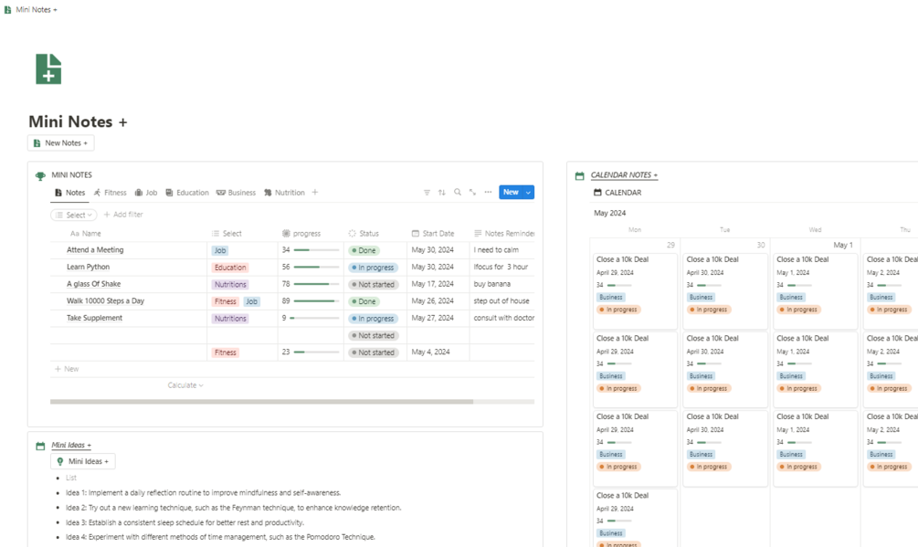 You have to click “duplicate” in the top right corner to duplicate the template to your Notion workspace, and you get this.